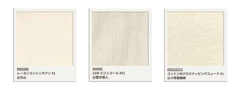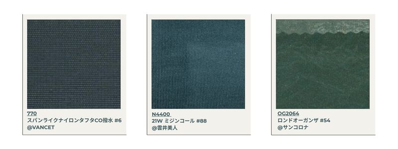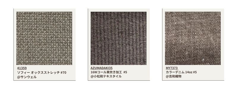 This material is said to be difficult to manufacture in Japan as it is used for lightweight denim. Three color variations are achieved through careful control of the dye concentration.