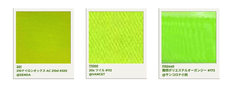 With the Y2K and Heisei revival trends in full swing, this yellow-green color has a luminous quality reminiscent of neon or phosphorescent light. Its vibrancy is enhanced when combined with lightweight materials like nylon and taffeta , or with glossy fabrics. When paired with simple, dark tones, it could become a striking accent color for a more subdued autumn/winter style.