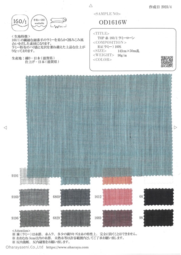 OD1616W TOP thread 160/1 Ramie lawn