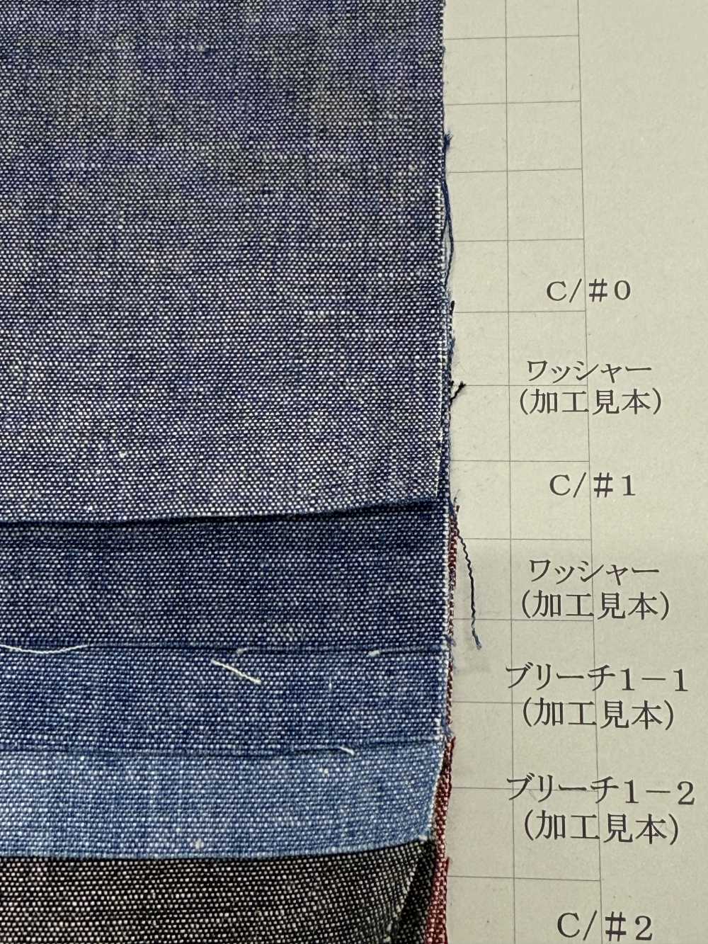 It is said that it is difficult to produce such lightweight denim in Japan.Three color variations are realized by controlling the dyeing density.