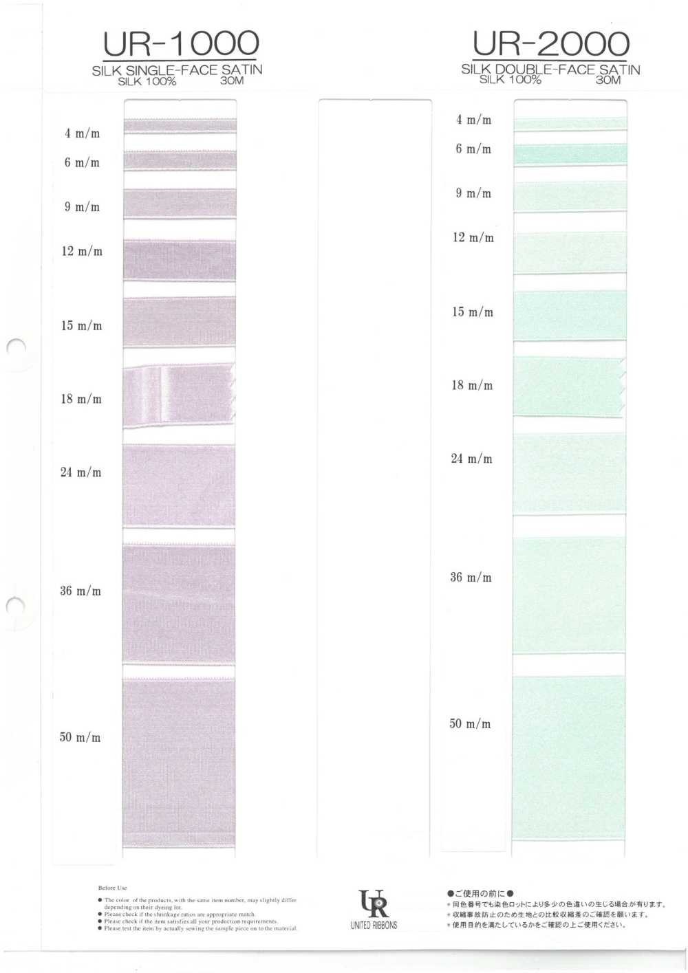 The UR-1000 Single Silk Satin, which has a smooth satin weave on both one-sided , is also available in the same sizes and colors.