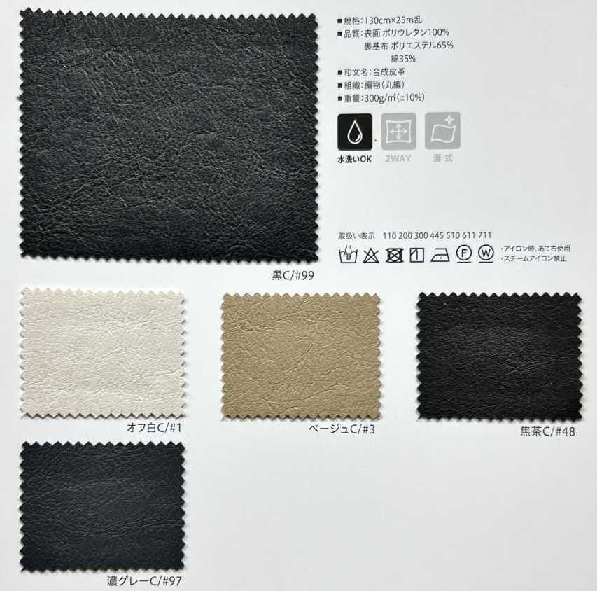 All seven of the product number featured here are made with polyurethane, making them highly durable synthetic leather that is resistant to deterioration over time. However, due to their chemical nature, synthetic leather will deteriorate when exposed to moisture in the air, sunlight, and temperature. Proper handling is essential, from cutting and sewing to storage.