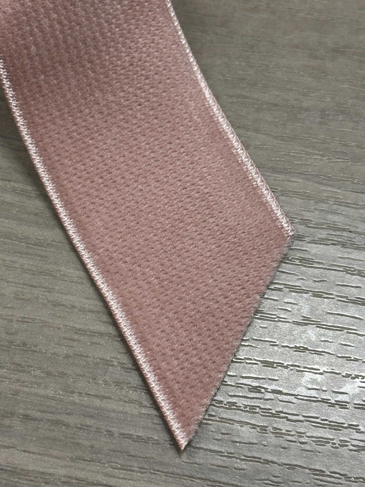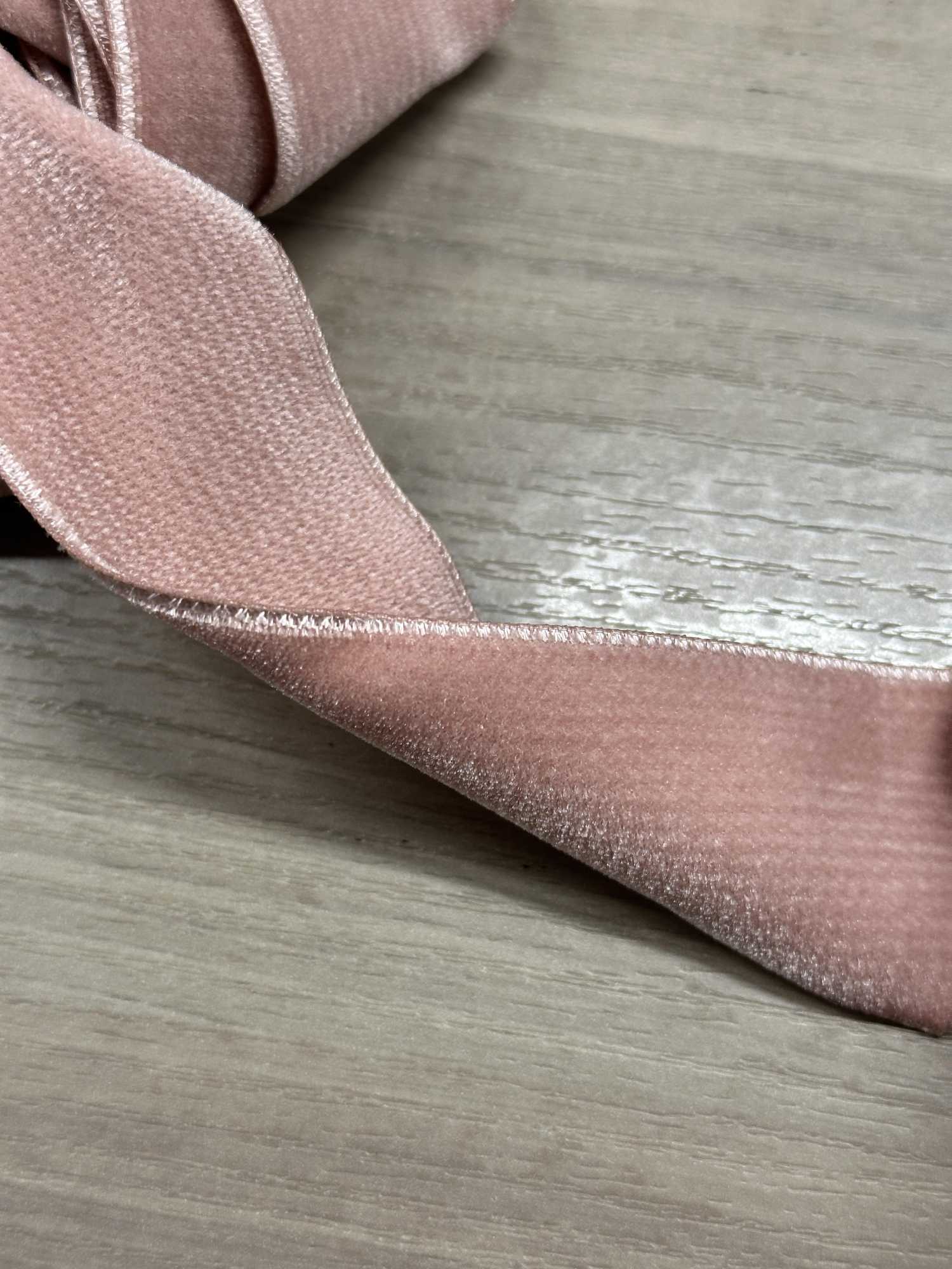 Both sides are made of velveteen, making this ribbon just the right thickness and giving it a strong presence. It would look great when used to mark the waist of a dress, as shoulder straps, or as decorative ribbons, creating a classic look! It has a matte texture, so you can of course use it for casual occasions as well. I feel excited when I combine the rose color of C/#20 with the texture of this velvet.