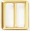 This is a die-cast buckle. It has a glossy finish and is characterized by thick edges on the left and right and a thin center. The rounded corners give the design a cool and elegant look. It can be used as a buckle for outerwear such as coats.