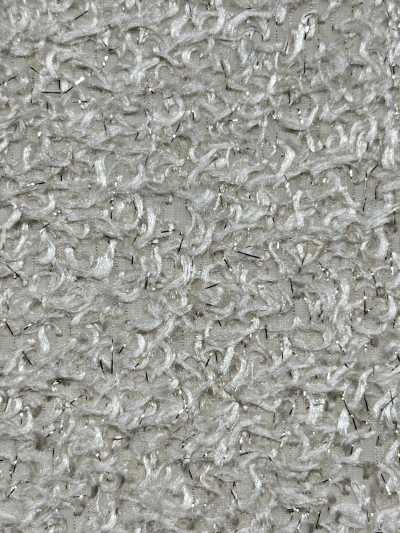 Silver wool thread is used for the warp, creating a sparkling, gorgeous, long-pile cut jacquard.